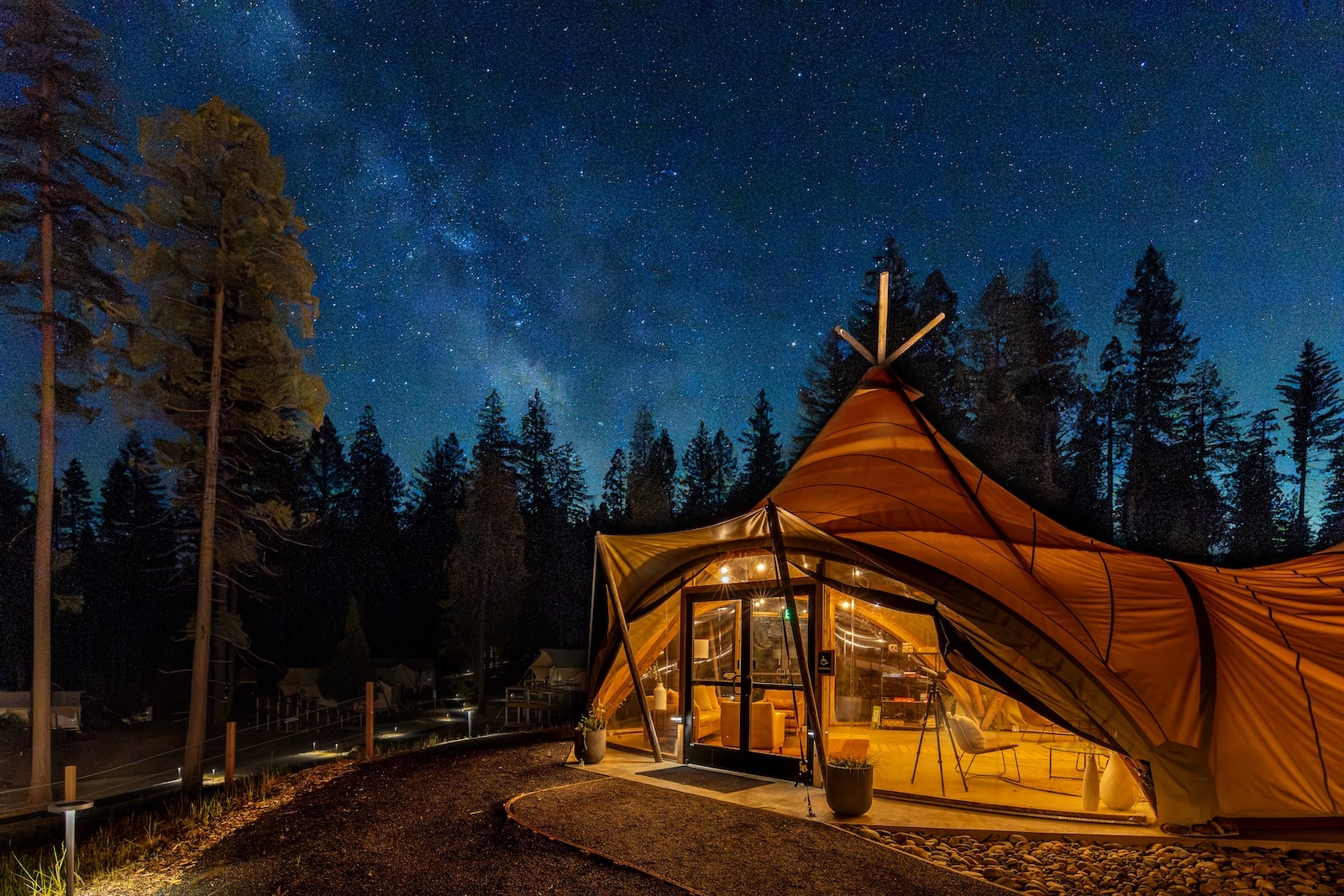 Combined with the region’s elevation and low ambient light, the camp delivers exceptional stargazing near Yosemite National Park, allowing guests to enjoy clear, unobstructed views of the night sky.